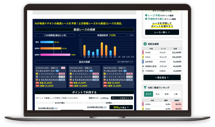 有料コースではさらに予想に役立つデータやAI予想を見ることができます。