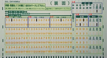 表面と同じレースの時のみ使えます。別のレースの馬券を買いたい場合は、別のマークシートに記入してください。