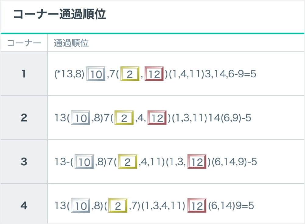 コーナー通過時の順位を表示しています。
