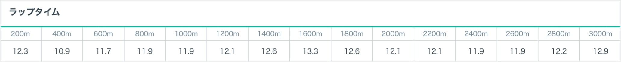 どの区間でペースアップorダウンしたか、レース展開をタイムで確認することができます。
