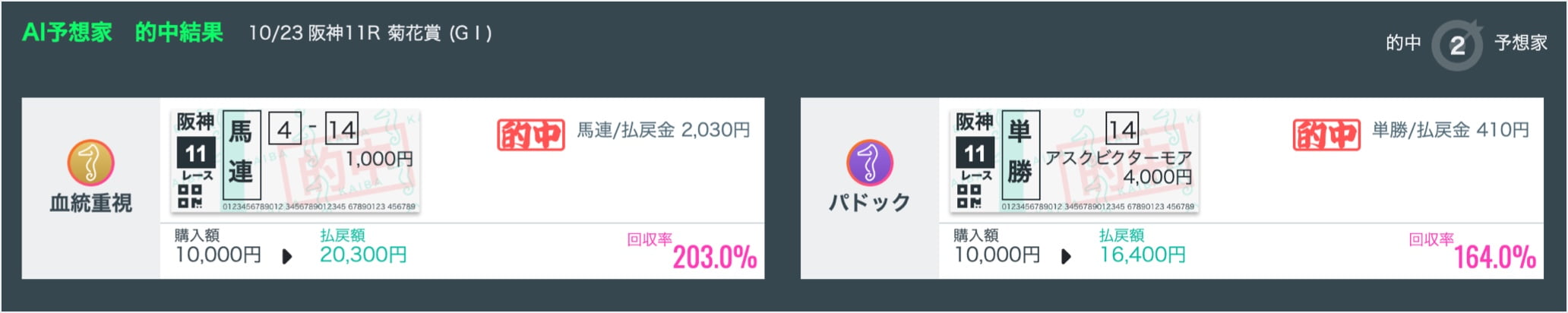 AI予想家の的中結果も配信します。