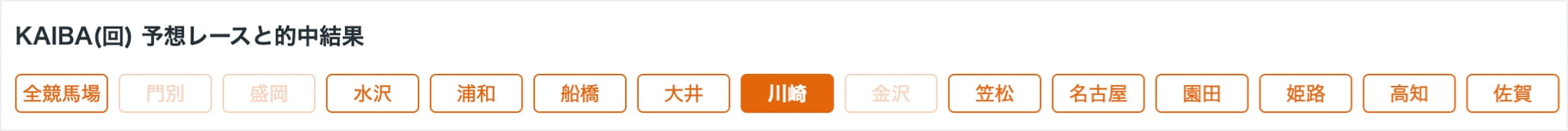 地方競馬では、各競馬場ごとでもデータの絞り込みができます。