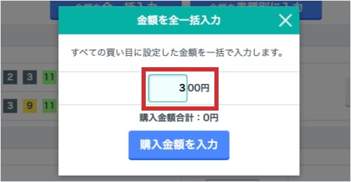 右記の[金額一括入力]のボタンからも券種別に個別で金額を入力することができます。