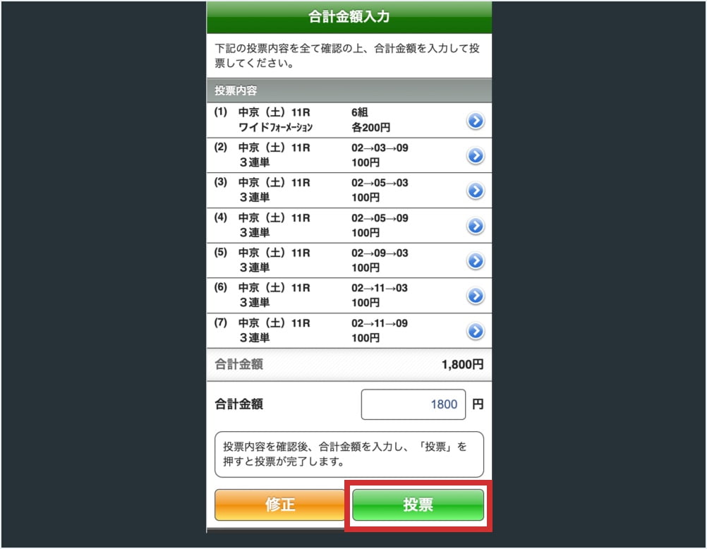 IPAT連携画面で金額入力後[IPATに投票]ボタンを押下