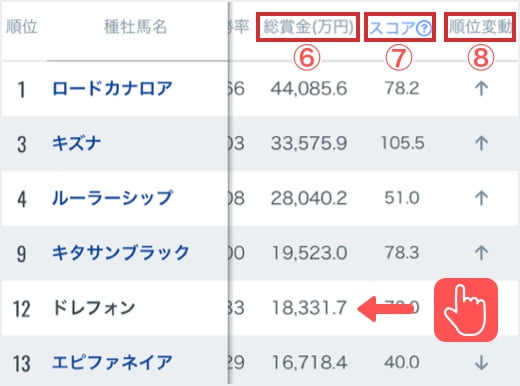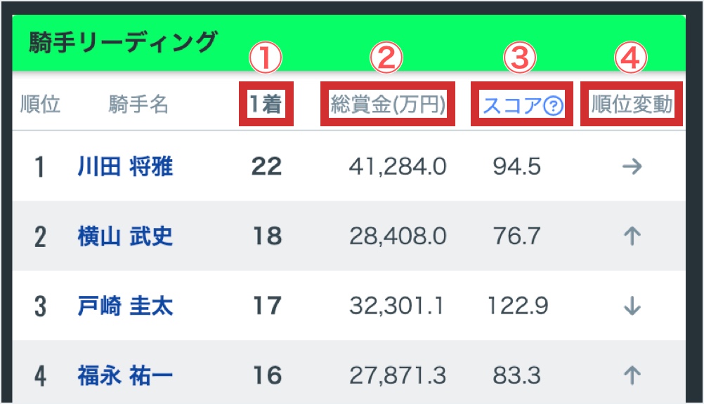 単勝回収率の成績を元に集計したスコア(馬券貢献度)も合わせて表示しています。