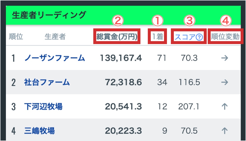 騎手・調教師・種牡馬・生産者のリーディング情報を掲載しています。
